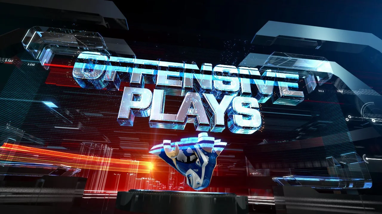 Design evolution for Monday Night Football on ESPN. Selected elements showcasing the digital creation of NFL team logos, text and footage windows.
