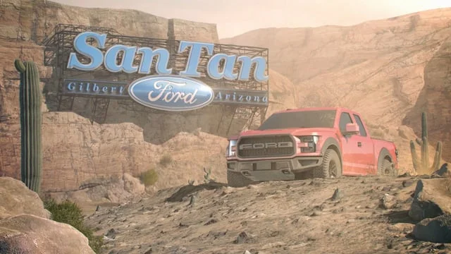 I created several animated elements focusing on the Ford F-150 and Ford Mustang which were then edited together to produce these TV spots for various San Tan Ford sales events. Fully CG and created from scratch, significant effort was put into capturing the Arizona desert environment, and producing realistic camera choreography.